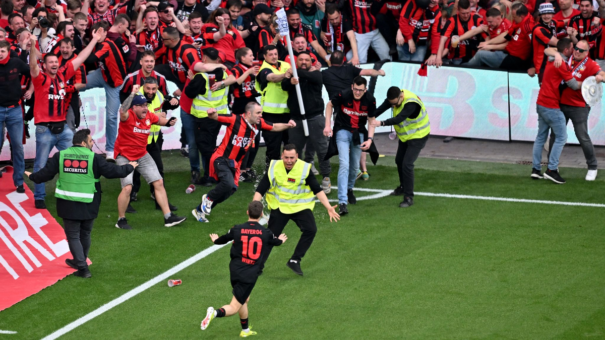 Schon Stunden vor dem Spiel herrschte rund um die später mit 30.210 Zuschauern ausverkaufte BayArena Volksfeststimmung. Mit Böllern, Silvesterraketen und lauten Gesängen wurde der Mannschaftsbus empfangen. Mützen und Schals, auf denen «Deutscher Meister 2024» stand, wurden verkauft. Fans hielten Schilder hoch, auf denen «Meisterkusen» stand.