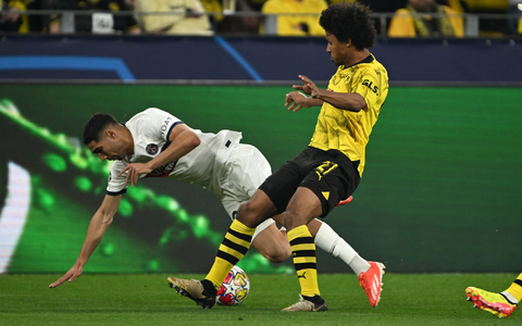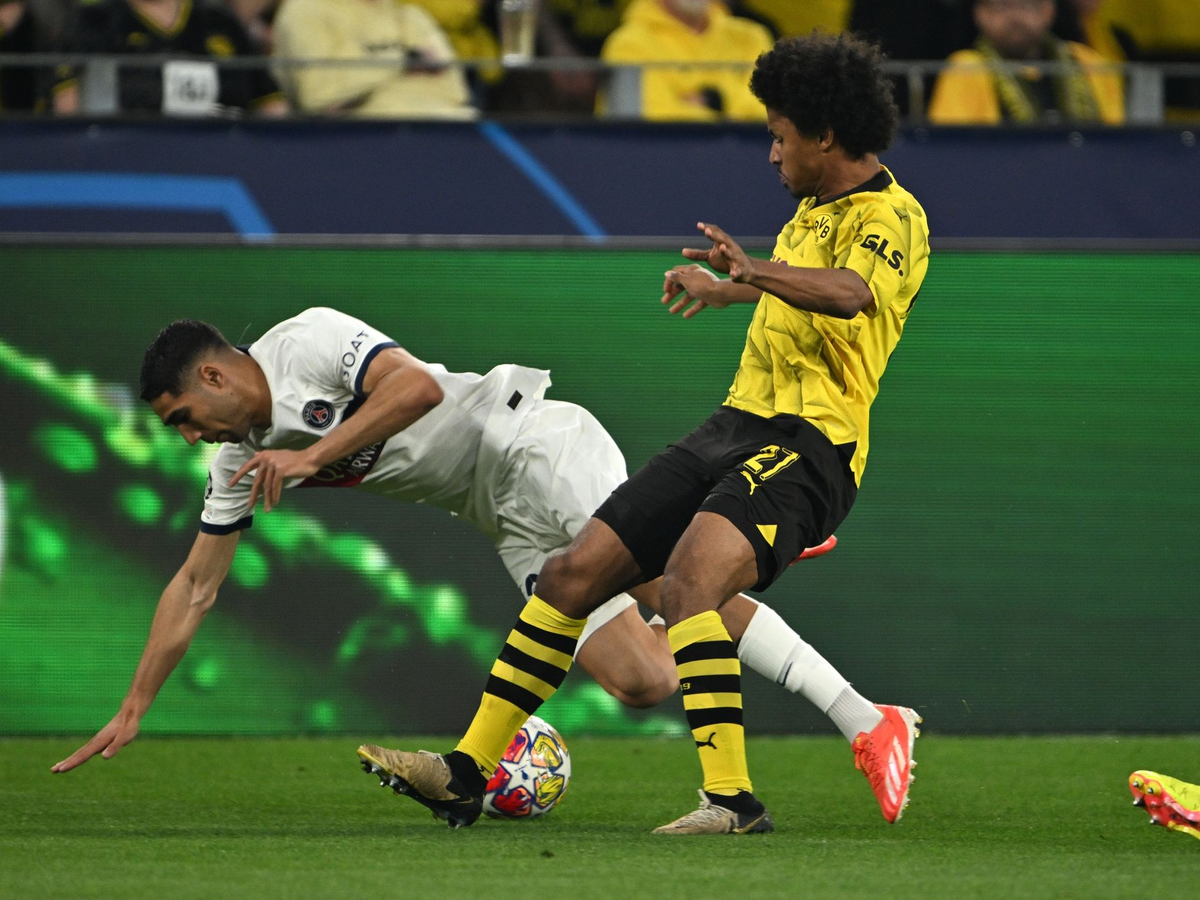 Danach übernahm das Pariser Starensemble die Spielkontrolle. Dortmund verteidigte aber geschickt und im Kollektiv, selbst Linksaußen Karim Adeyemi arbeitet oft gegen Achraf Hakimi bis an die eigene Grundlinie mit zurück. Dortmund setzte zudem auf Konter - und schlug damit eiskalt zu.