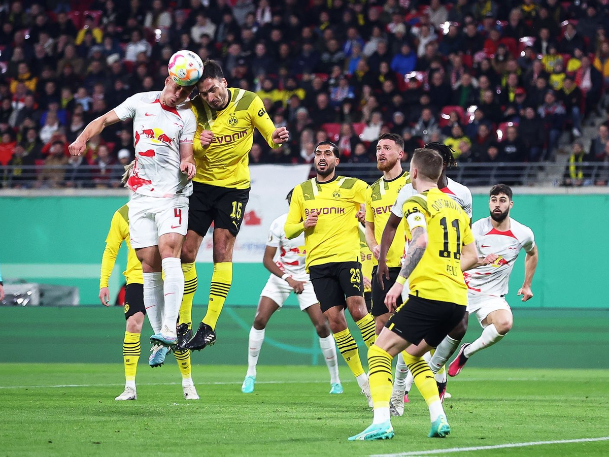 Jadon Sancho (20. Minute) brachte den BVB, der am Mittwoch im Halbfinal-Hinspiel der Champions League Paris Saint-Germain empfängt, mit einem fabelhaften Schlenzer in den Winkel vom linken Strafraumeck aus in Führung. Schon drei Minuten später glich RB-Torjäger Lois Openda aus, ehe Benjamin Sesko (45.+2) in der Nachspielzeit der ersten Halbzeit das Spiel drehte. Vor 47.069 im ausverkauften Leipziger EM-Stadion Fans erhöhte Mohamed Simakan (46.) direkt nach dem Seitenwechsel. Der eingewechselte Christoph Baumgartner (80.) machte alles klar.