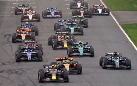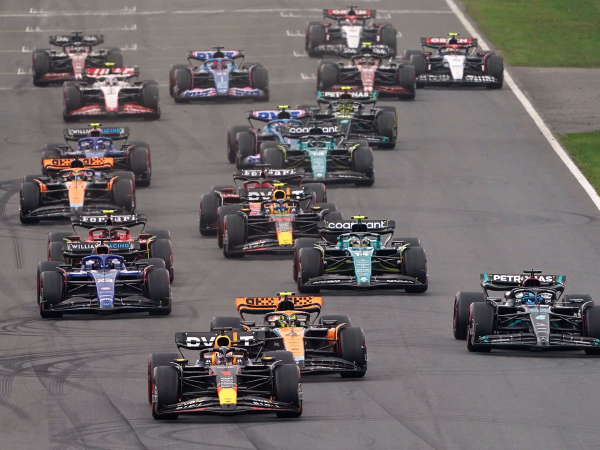 Vorn bestimmte Verstappen das Tempo. Nach dem Siegen 2021 und 2022 sorgte er auch diesem Jahr wieder für Begeisterungsstürme auf den proppenvollen Rängen. Die Verfolger um Pérez ließ er bei der Rennfreigabe locker zurück. Doch vorbei war es immer noch nicht. Auch Verstappen schien das nicht unbedingt zu gefallen.