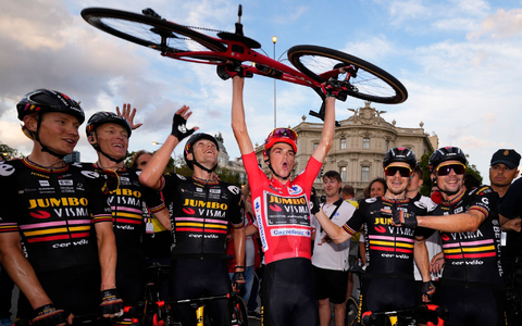 Die Mannschaft Jumbo-Visma, wegen ihrer schwarz-gelben Trikots ehrfurchtsvoll Killerwespen genannt, dominierte die drei großen Landesrundfahrten in diesem Jahr wie keine andere Equipe zuvor. Roglic gewann im Mai den Giro d'Italia, Vingegaard im Juli die Tour de France - und in Spanien war nun Edelhelfer Kuss an der Reihe. Alle drei Grand Tours in einem Jahr hat noch nie eine Mannschaft gewonnen. Drei Fahrer eines Teams auf dem Podium der Vuelta hatte es zuvor nur 1966 durch den KAS-Rennstall gegeben.