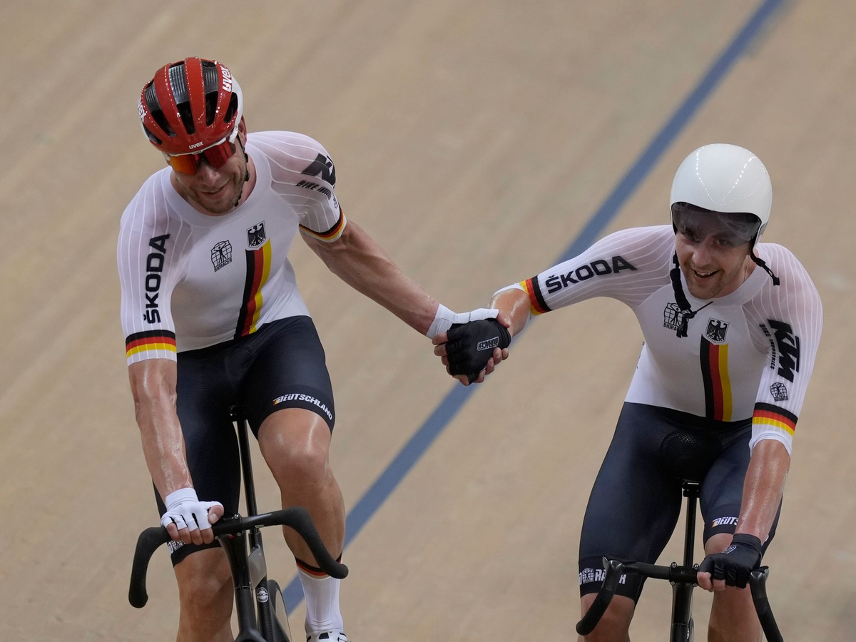 Das Berliner Duo hielt bei den Bahnradsport-Europameisterschaften dem Druck stand und gewann zum dritten Mal in Folge nach München 2022 und Grenchen 2023 den Titel im Zweier-Mannschaftsfahren und schaffte einen historischen Hattrick.