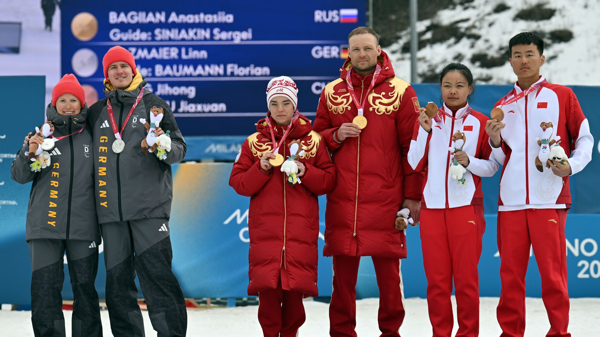 10.03.2026 - 16:40:55 | dpa.deAuf dem Siegerpodest fühlte sich Linn Kazmeier neben der russischen Siegerin Anastasija Bagijan sichtlich unwohl. Die sehbehinderte Langläuferin senkte den Blick und hielt ihr Plüschmaskottchen fest, als die russische Flagge gehisst und die Hymne gespielt wurde. Beim Abschlussfoto auf dem Podium für die Entscheidung im Klassik-Sprint standen Silbermedaillengewinnerin Kazmaier und ihr Guide mit deutlichem Abstand zum russischen Duo und den drittplatzierten Chinesen.