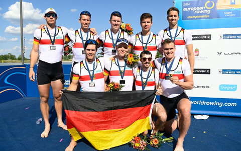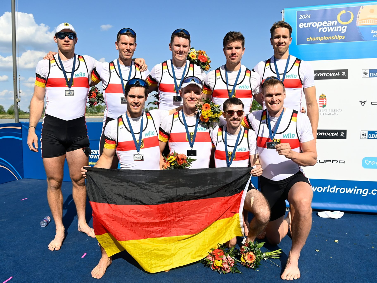27.04.2024 - 16:50:27 | dpa.deMutiger Start, beherztes Finale - für den Deutschland-Achter ist das lange Warten auf eine Medaille zu Ende. Mit dem zweiten Rang bei der EM in Szeged gelang dem Paradeboot des Deutschen Ruderverbandes (DRV) zum ersten Mal seit Silber 2021 in Tokio wieder der Sprung unter die Top drei bei einer international bedeutsamen Regatta.