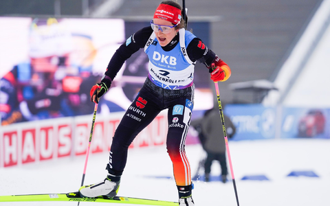 Beim Sieg der Schweizerin Lena Häcki-Groß (2 Fehler) hatte die 26-jährige Bayerin nach 12,5 Kilometern 1:28,0 Minuten Rückstand. Den zweiten Platz sichert sich die Französin Julia Simon (4) vor ihrer laufstarken Landsfrau Lou Jeanmonnot (3).
