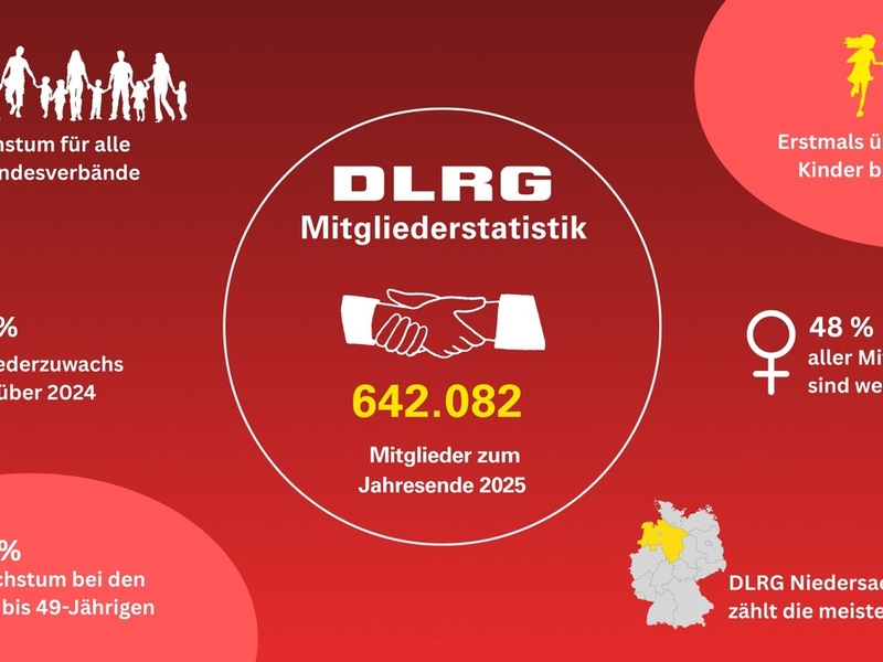 Bad Nenndorf - Die Deutsche Lebens-Rettungs-Gesellschaft (DLRG) hat einen neuen Mitgliederrekord erreicht. Zum Stichtag 31. Dezember 2025 zählte der Verband 642.082 Mitgliedschaften. Gegenüber dem Vorjahr entspricht das einem Zuwachs von 14.936 Mitgliedern beziehungsweise 2,34 Prozent. "Wir freuen uns über das ungebrochene Interesse an unserer Arbeit. Der erneute Rekord zeigt, dass die DLRG für zunehmend mehr Menschen attraktiv ist. Mit Ausnahme der Zeit während der Corona-Pandemie hält dieser positive Trend bereits seit Jahren an", sagte Präsidentin Ute Vogt. Die Zahlen unterstrichen die Bedeutung der DLRG für die Wassersicherheit in Deutschland.