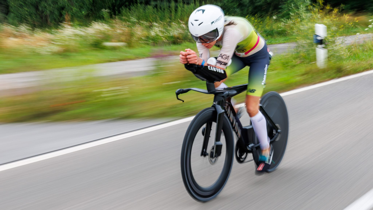 Haug, die beste Läuferin im Feld, rannte durch die lange Wechselzone zum Beutel mit dem Equipment fürs Rad. Praktisch zeitgleich stieg sie mit Philipp auf ihre - wie bei allen - bis ins letzte Detail abgestimmte Zeitfahrmaschine. Doch dann stoppt Haug nach wenigen hundert Metern.