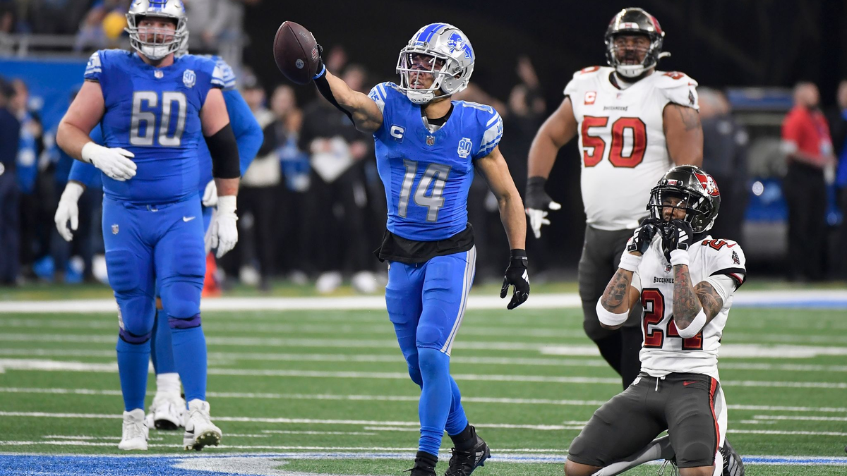 Möglicher Gegner dann: Die Detroit Lions und Amon-Ra St. Brown. Der Deutsch-Amerikaner hatte mit einem Touchdown und als erneut bester Receiver seines Teams am Sonntag großen Anteil am Erfolg seiner Mannschaft. Durch das 31:23 gegen die Tampa Bay Buccaneers fehlt den Lions nur noch ein Sieg zum Einzug in den Super Bowl. Es wäre eine Premiere für Detroit.