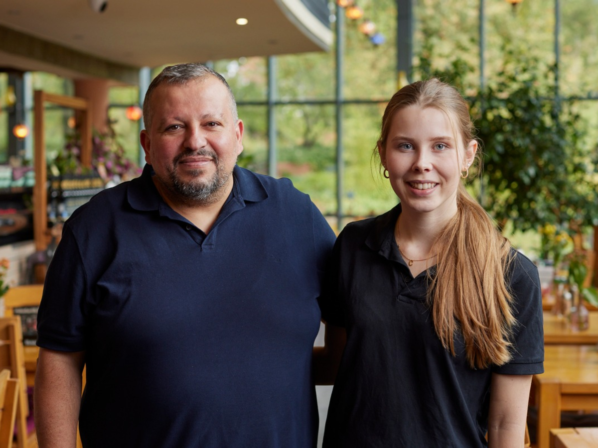 Bild 1: Inhaber Sinan Bozkurt und Management-Assistentin Jael Meyn freuen sich über die Auszeichnung: Das Restaurant Ronja im Ringlokschuppen hat den METRO Preis für nachhaltige Gastronomie 2023 gewonnen.