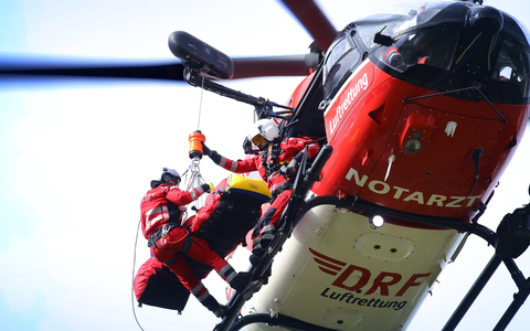 "Das ist für den Winden-Operator, der gleichzeitig auch Pilot ist, fliegerisch extrem anspruchsvoll - aber auch für die aussteigenden Retter, denn der Rotor kommt ihnen hierbei sehr nahe", erläutert Oberstarzt Dr. Lutz Siegl. Der erfahrene Notarzt ist Teil der Hubschrauber-Crew sowie Leiter des Zentrums für Notfall- und Rettungsmedizin am BwKrhs Berlin.