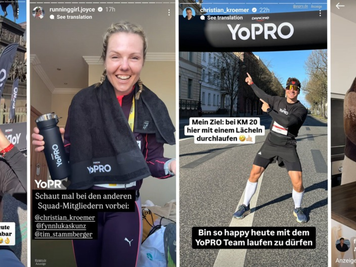 In 36 Content-Pieces auf TikTok und Instagram geben die vier "YoPRO Squad"-Mitglieder Einblicke in mentale Herausforderungen und ihren Trainingsalltag - und zeigen: Fortschritt verläuft selten gradlinig, ist aber immer möglich. YoPRO positioniert sich dabei als täglicher Begleiter und Enabler auf dem Weg zu mehr Stärke, Selbstvertrauen und Zielstrebigkeit. Höhepunkt der Kampagne bildete die Teilnahme am Berliner Halbmarathon am 6. April - als greifbares Ziel ihrer Challenge und symbolischer Meilenstein ihrer Fitnessreise.