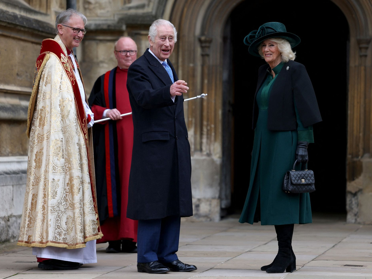 Der britische König Charles (75) und seine Frau Königin Camilla (76) besuchten den Ostergottesdienst in der St.-George's-Kapelle in Windsor. Das Paar zeigte sich am Morgen lächelnd und winkend, als es die Kirche auf dem Gelände des Schlosses Windsor betrat. Als aus einer Gruppe von Schaulustigen jemand «Frohe Ostern!» rief, antwortete der König: «Ihnen auch!»