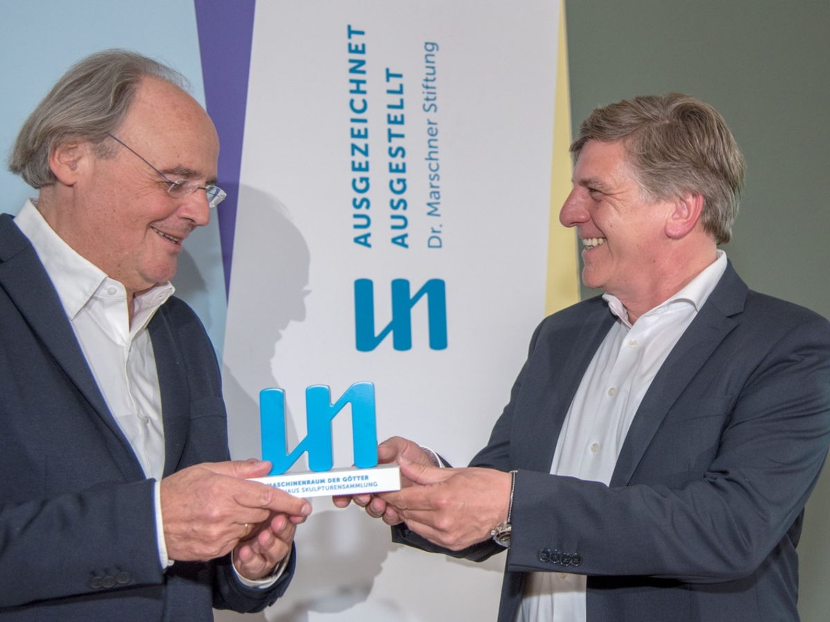 Stiftungsvorstand Peter Gatzemeier: "Das Spektrum der bisherigen Preisträger von ,Ausgezeichnet Ausgestellt' spiegelt wider, welch hohes Niveau die Frankfurter Kunstszene bereits seit Jahren kontinuierlich bietet. Ich freue mich, dass die Dr. Marschner Stiftung Teil dieser pulsierenden Metropole ist und so auch für das vergangene Jahr eine herausragende kuratorische Leistung würdigen darf. Die Liebieghaus Skulpturensammlung ist seit Jahren nicht nur ein Epizentrum für Experten weltweit, immer mehr erfreut sie sich bei einem breiten Publikum enormer Beliebtheit. Dies liegt nicht zuletzt an der einmaligen Arbeit der Kuratoren des Hauses. Das Ausstellungsprojekt ,Maschinenraum der Götter. Wie unsere Zukunft erfunden wurde' war eine Bravourleistung in diesem Kontext und es freut mich sehr, den Dr. Marschner Ausstellungspreis für 2023 an Herrn Prof. Dr. Vinzenz Brinkmann zu überreichen."