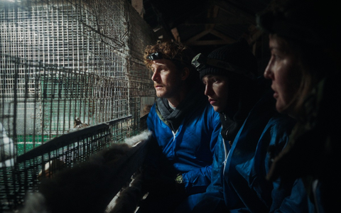 Bereits in der ersten Nacht betrat das Team nach Mitternacht bei eisiger Kälte heimlich eine Pelzfarm. Anhand der an den Käfigen angebrachten Zuchtkarten erkannten die Tierschützer*innen, dass es sich um eine Saga Furs zertifizierte Farm handelt. Saga Furs ist ein international tätiges Pelz-Auktionshaus, das mit eigenen Tierwohl-Zertifizierungen wirbt. Zu sehen sind Füchse, darunter extrem überzüchtete sogenannte "Monsterfüchse", sowie Marderhunde in engen Drahtkäfigen. Viele Tiere zeigen Verletzungen, apathisches Verhalten und stereotype Bewegungen.