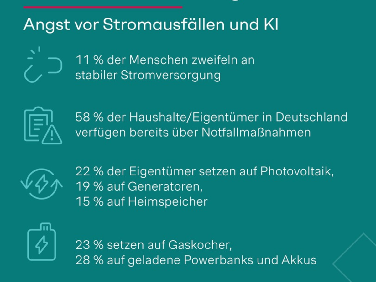 Energie-Studie: Jeder zehnte Deutsche zweifelt an stabiler Stromversorgung - 58 % der Haushalte haben Notfallmaßnahmen