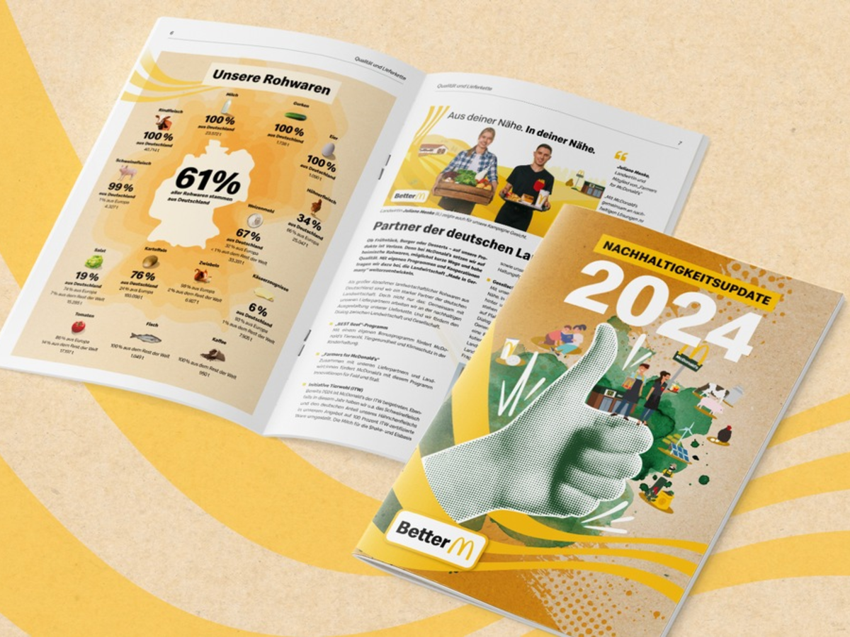Das Engagement von McDonald's Deutschland und seinen Franchise-Nehmer:innen ist Teil einer umfassenden Nachhaltigkeitsstrategie. Diese setzt unter dem Dach "Better M" unter anderem auf Verpackungsreduktion, Recycling und lokale Anti-Littering-Maßnahmen. Einen aktuellen Überblick zu den wichtigsten Maßnahmen und Zahlen bietet das Nachhaltigkeitsupdate 2024, das seit vergangener Woche in allen Restaurants sowie online verfügbar ist. Wie bereits im letzten Jahr ist die Broschüre auch dieses Mal aus recyceltem Becherpapier hergestellt.