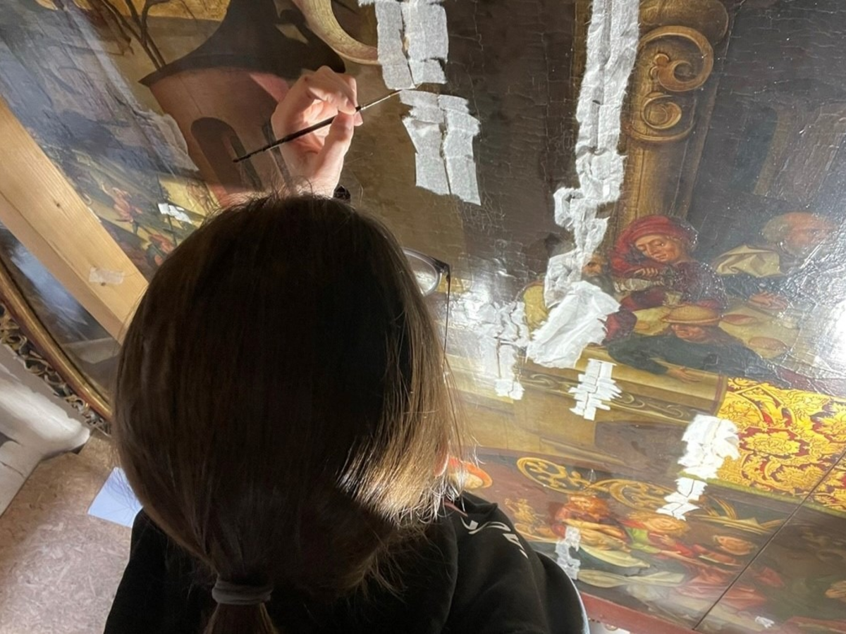 Beim großformatigen Holztafelbild mit biblischen Szenen aus der Heilsgeschichte in der Sakristei des Doms St. Maria und St. Korbinian waren die Schäden aufgrund mangelnder Luftfeuchtigkeit immer größer geworden: Das Holz trocknete aus, zog sich zusammen und schrumpfte - mit verheerenden Auswirkungen auf die Ölfarbe: Es bildeten sich Risse, und die Farbschicht löste sich ab. Das spätgotische Kunstwerk mit hoher kulturhistorischer Bedeutung zerbröselte. "Wie sich die Klimakrise auf unsere Kulturgüter auswirkt, beschäftigt das Landesamt schon lange", sagt Generalkonservator Prof. Mathias Pfeil. "In Pionierarbeit haben wir nun ein wichtiges und wegweisendes Projekt erfolgreich durchgeführt. Das gewonnene Wissen ist wertvoll für den Erhalt unserer Kunstschätze und lässt sich national und international übertragen."
