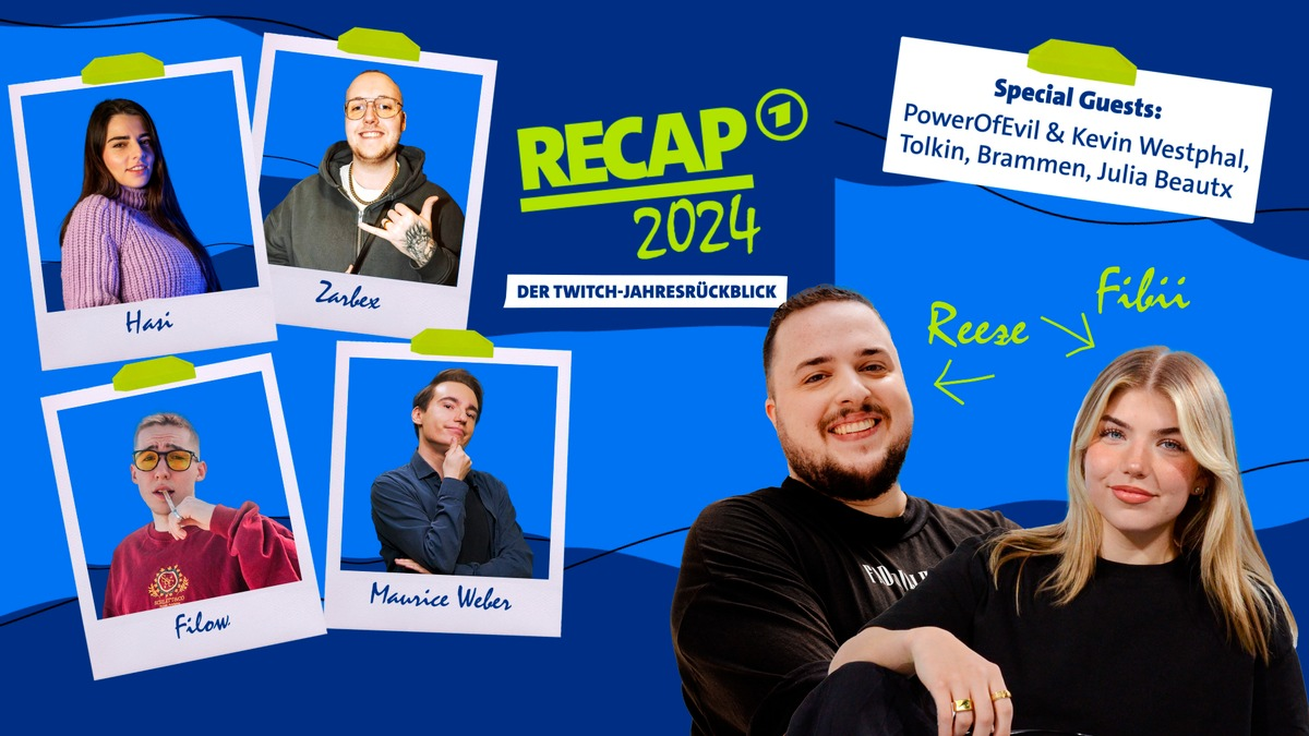 20.11.2024 - 13:28:32 | presseportal.de"Recap 2024" ist der erste interaktive Jahresrückblick der ARD und wird live als Stream auf Twitch übertragen. Auf die Zuschauenden wartet eine Weltpremiere von Musiker Filow, eine "X-mas-Challenge" von Streamerin Hasi und Spiele im Großformat, in denen die Content-Creatoren Zarbex und Maurice Weber starke Nerven beweisen müssen. Die Hosts Fibii und Reeze zeigen außerdem ihre ganz persönlichen Twitch-Highlights, reagieren, diskutieren und zocken gemeinsam mit den angesagtesten Streamer:innen des Jahres. Der Stream wird vom SWR in Zusammenarbeit mit smile! Producing und GetHero bereitgestellt.