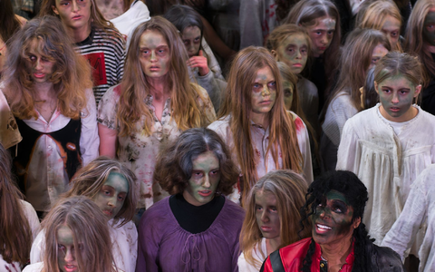 Zu Halloween haben als Zombies verkleidete Menschen ihren großen Auftritt im Hamburger Hauptbahnhof. Etwa 150 Tänzerinnen und Tänzer aus Deutschland, Österreich und der Schweiz führten die berühmte Thriller-Choreographie von Michael Jackson auf, wie das Unternehmen Stage Entertainment mitteilte. Organisiert wird die Gruselshow von einem Fanclub.