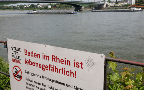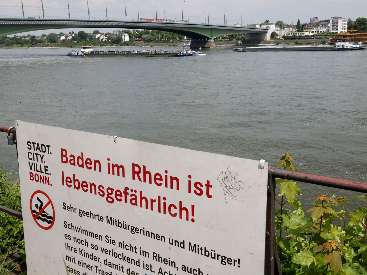 Für den Rhein als Bundeswasserstraße gelte kein grundsätzliches Badeverbot, sagte der Feuerwehrsprecher. Allerdings gälten Verbote an bestimmten Stellen, etwa vor Bauwerken wie Brücken oder an Hafeneinfahrten. «Wir raten aufgrund der Strömungsgeschwindigkeit natürlich grundsätzlich davon ab», sagte der Sprecher. Die Strömungen sind unter der stillen Oberfläche des Flusses oft nicht zu sehen. Auch der Sog vorbeifahrender Schiffe ist eine Gefahrenquelle.