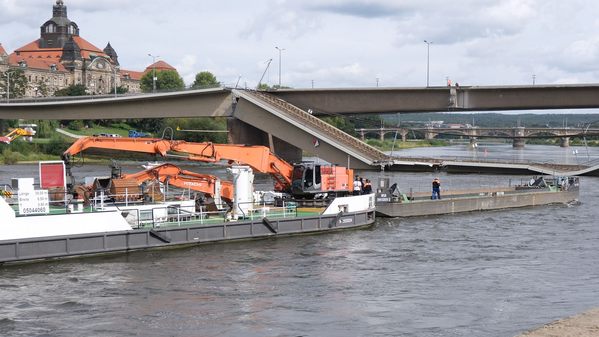 Dresdner Carolabrücke gefährdet - Zerstörtes wird abgerissen