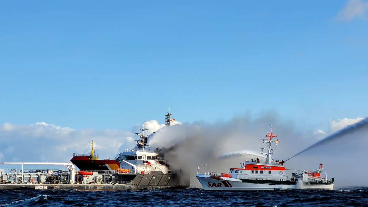 Großeinsatz bei brennendem Öltanker auf Ostsee