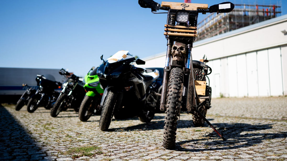 19.08.2025 - 17:15:29 | dpa.deMehrere Motorräder stehen nun auf einem Parkplatz des Thüringer Landeskriminalamts: Die Polizei hat sie bei einer großangelegten Razzia im Rockermilieu sichergestellt. Die Beamten durchsuchten 18 Objekte in Sachsen, Thüringen und Bayern. Der Schwerpunkt der Ermittlungen lag in Südthüringen, sagte der Vize-Präsident des Thüringer LKA, Heiko Schmidt. Es geht um den Verdacht der schweren räuberischen Erpressung. Die Ermittlungen richten sich gegen zehn Deutsche im Alter zwischen 20 und 50 Jahren. Festnahmen gab es keine.
