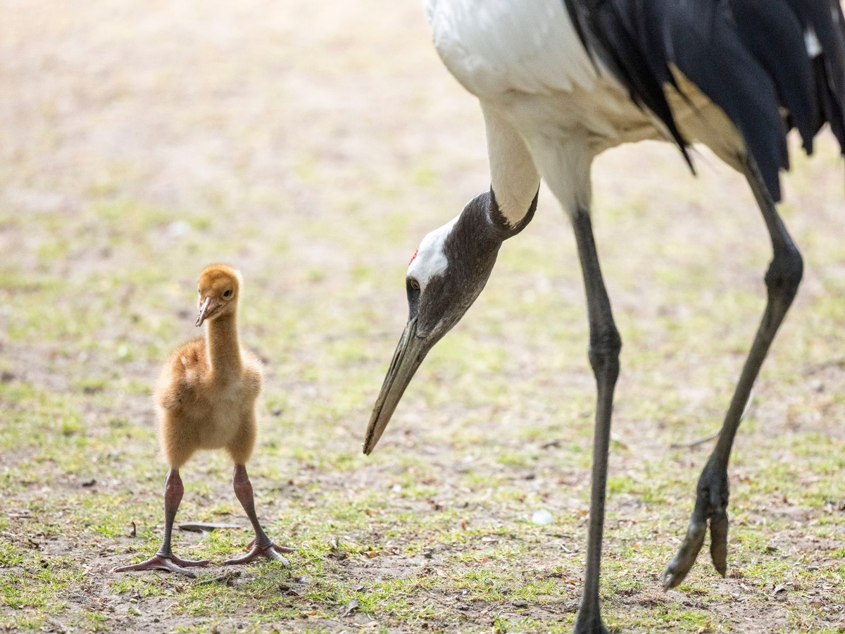Flauschig: Schneekranichküken in Kölner Zoo geschlüpft