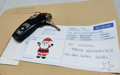 Die Polizei in Neumünster hat der Frau ihren Schlüsselbund nun zugeschickt, mit Weihnachtsgrüßen aus dem hohen Norden. «Zu Weihnachten war dies vermutlich ein letzter Weihnachtsgruß von ihrem verstorbenen Hund», hieß es dazu in der Polizeimitteilung. «Denn ohne die Marke hätte die Frau ihren Schlüsselbund wohl nicht wiederbekommen.»