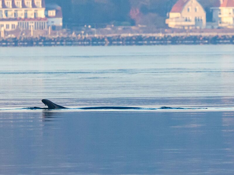 Ein Wal schwimmt im Wismarer Hafen