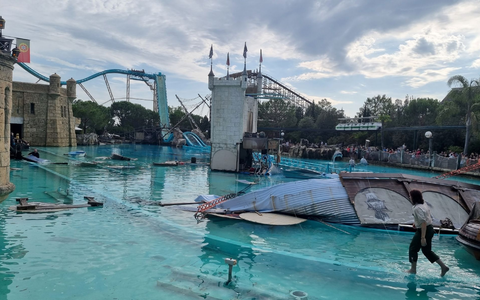 Am Montag war ein Wasserbecken im größten Freizeitpark in Deutschland gerissen, in das die Akrobaten springen. Daran befestigte Sprungtürme stürzten ein. Auch zwei Besucher erlitten leichtere Verletzungen.