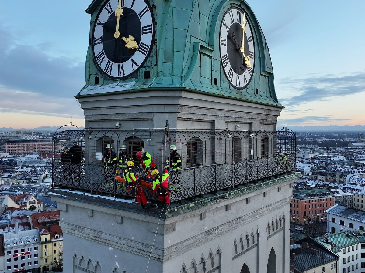Feuerwehr seilt verletzte Frau von Kirchenturm in München ab