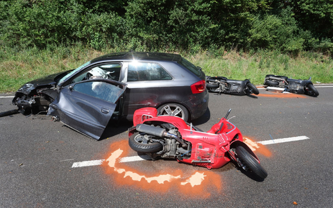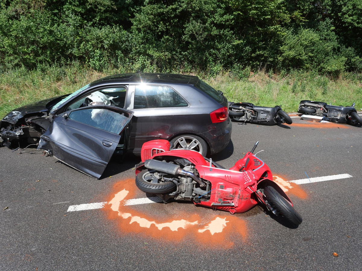 Bei einem Unfall mit zwei Autos und einer Motorrollergruppe in Oberbayern ist ein Mensch gestorben, acht weitere wurden verletzt. Nach ersten Erkenntnissen seien am Freitag zwei Autos auf der Bundesstraße 17 in Schongau frontal zusammengestoßen, sagte ein Polizeisprecher. In den Unfall sei dann auch eine in unmittelbarer Nähe fahrende Gruppe von Vespa-Fahrern verwickelt worden. Einer der Rollerfahrer sei in der Folge an seinen schweren Verletzungen gestorben.