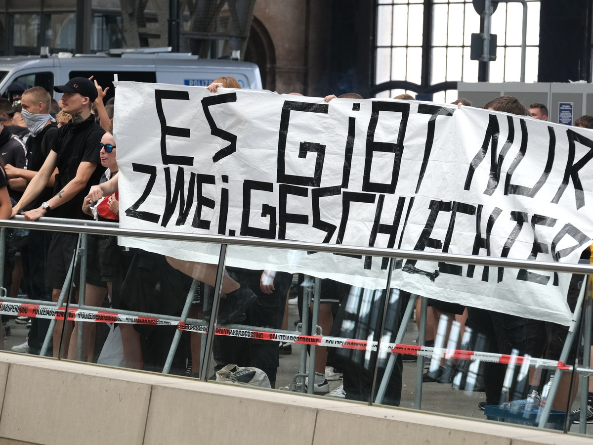 Wie die Polizei auf X berichtete, zeigten die Teilnehmer der rechtsextremen Kundgebung schon bei der Ankunft «ein versammlungstypisches und teilweise aggressives bzw. militantes Verhalten». Sie wurden einer Identitätsfeststellung unterzogen und nach gefährlichen Gegenständen durchsucht.