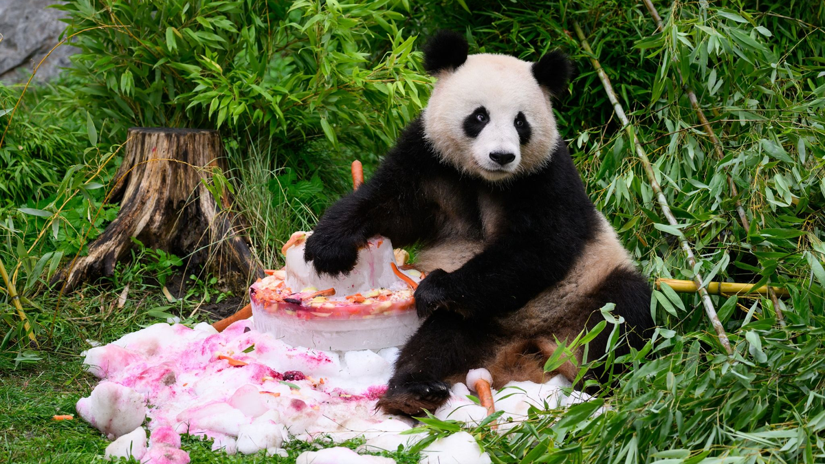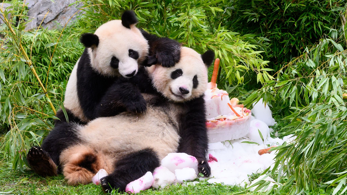 Pandabären feiern vierten Geburtstag mit Eistorte
