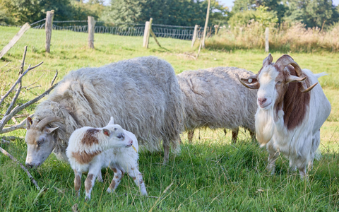 28.08.2024 - 13:26:00 | dpa.deAuf einem Resthof bei Glücksburg an der Flensburger Förde hat es sehr wahrscheinlich seltenen Nachwuchs gegeben. Bei Flumo handelt es sich mutmaßlich um eine Mischung aus Schaf und Ziege – eine Schiege. Der kleine Bock hat weißes Fell mit braunen Flecken - genauso wie Ziegenbock Rune, der seit Jahren mit einer kleinen Schafsherde auf der Koppel hinter dem Haus lebt. Der einzige Schafsbock in der Herde hat dunkles Fell.
