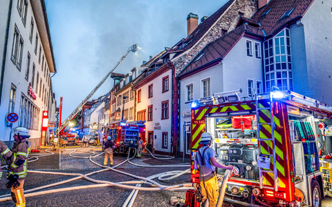 Die Löscharbeiten sind nach dem Großbrand in der Altstadt von Villingen-Schwenningern beendet. Feuerwehrleute sind weiter in der Altstadt und halten Brandwache, wie ein Polizeisprecher am Morgen erklärte. Das Feuer brach den Angaben zufolge am Samstagabend aus und griff auf mehrere Häuser über. Laut Polizei ist ein Schaden in Millionenhöhe entstanden.