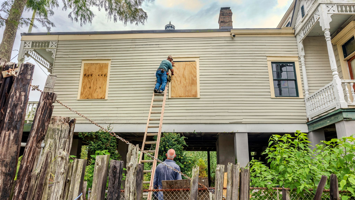 Um Gebäude zu schützen, vernagelten Bewohner die Fenster mit Brettern. Andere füllten Sandsäcke, um Häuser und Straßen gegen die erwarteten Wassermassen abzusichern.
