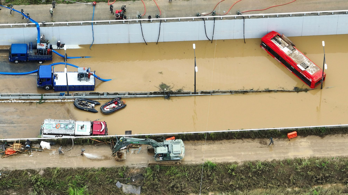 Mit Stand Montagmittag (Ortszeit) hatten die Rettungskräfte 13 Leichen aus einem Tunnel in der zentralkoreanischen Stadt Osong geborgen. Die Unterführung, in der rund 15 Fahrzeuge waren, wurde am Samstag innerhalb weniger Minuten geflutet.