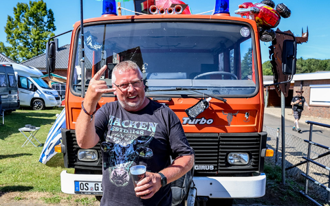 Gleich mit etwa 40 Mitstreitern ist Martin aus Niedersachsen nach Wacken gereist. Für den Metalfan aus dem Osnabrücker Land ist es der zehnte oder elfte Besuch. Aus «Jux und Dollerei» hätten sie ein Haus direkt an der Hauptstraße des kleinen Orts gekauft. Nach dem Festival soll zumindest eine Ferien-Wohnung darin genutzt werden. Der Niedersachse ist mit einem alten, ausrangierten Feuerwehr-Wagen nach Wacken gekommen. «Der große Vorteil ist: Neunsitzer und viel Laderaum für viel Bier», sagt er. An Bord waren 15 Kisten und 8 Paletten. Insgesamt habe die Gruppe rund 700 Liter mitgebracht, sagt er.