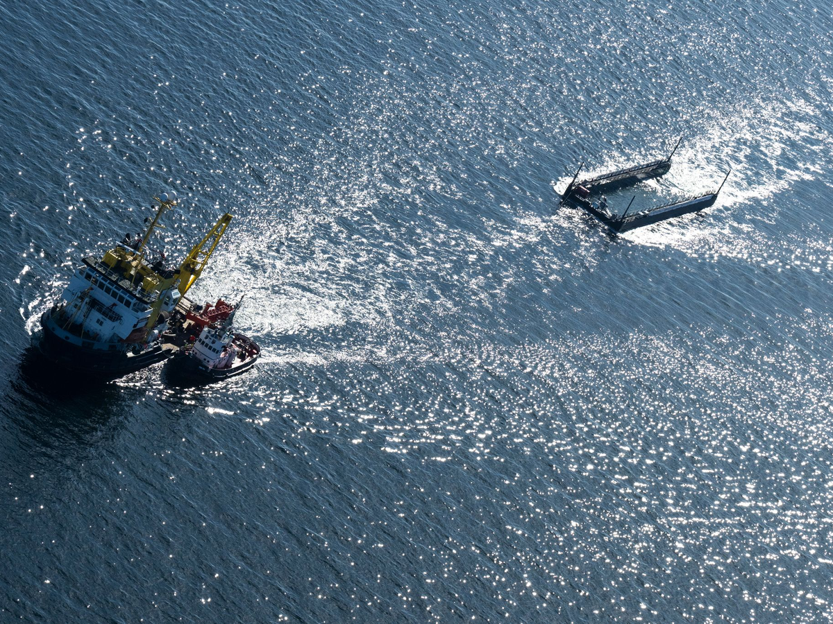 Der Schlepper «Robin Hood», der die Barge bis südöstlich von Fehmarn gezogen hatte, bevor es von der größeren «Fortuna B» abgelöst wurde, dient laut Initiative nun quasi als Shuttle, um Helfer von der «Fortuna B» auf die Barge und zurückzubringen.