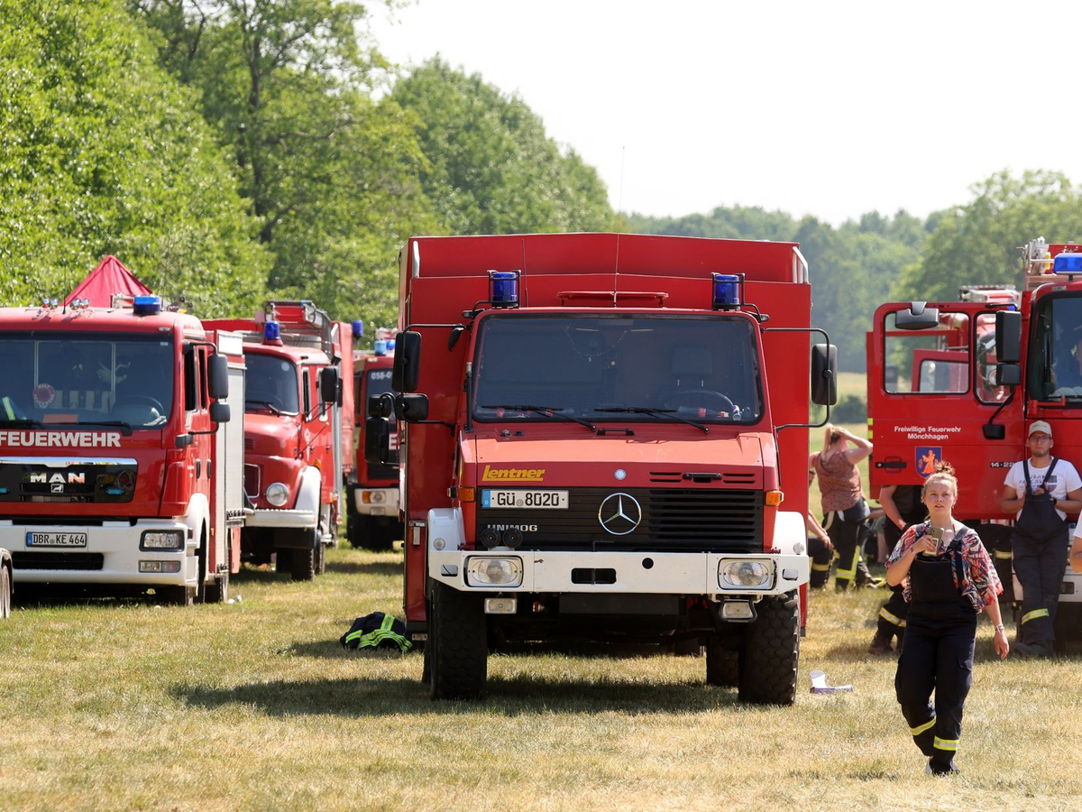 Auf dem munitionsbelasteten Gebiet brennt es seit dem 31. Mai. Die Feuerwehr kommt wegen der Explosionsgefahr auf dem ehemaligen Truppenübungsplatz nicht direkt an die Brandherde heran. Dörfer sind nicht in Gefahr. Am Mittwoch hatte starker Wind den Waldbrand wieder angefacht. Die betroffene Fläche verdoppelte sich auf mehr als 600 Hektar.