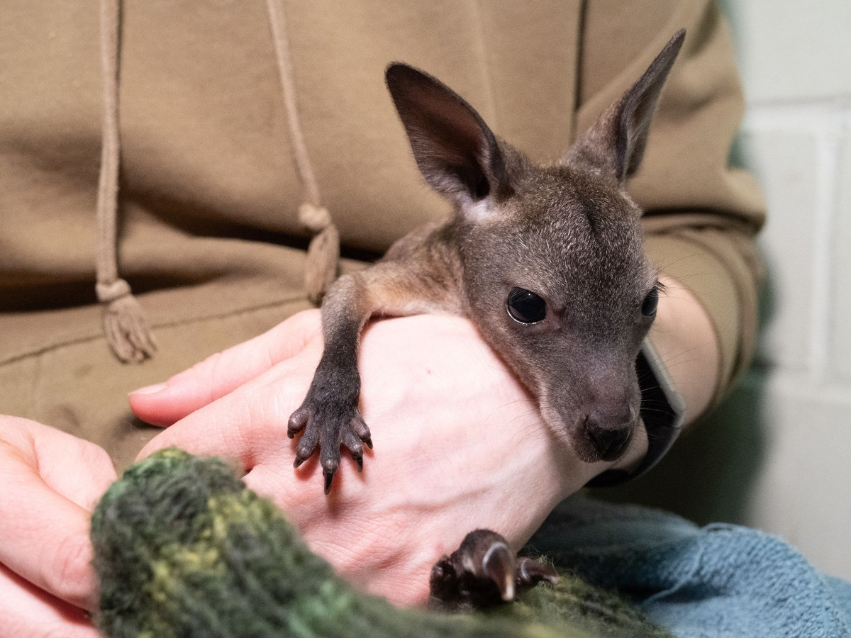 Das verstoßene Jungtier werde nun per Hand mit einer Spritze samt Nuckel und bald per Flasche mit Spezialmilch gefüttert. Pflegerinnen transportierten es auch im Beutel, nur eben in einem Jutebeutel. Etwa ab Juni werde man versuchen, es wieder in die Gruppe zu integrieren. Zu ihr gehörten fünf weibliche Tiere, wovon zwei aktuell Jungtiere im Beutel hätten, sowie zwei männliche Tiere.
