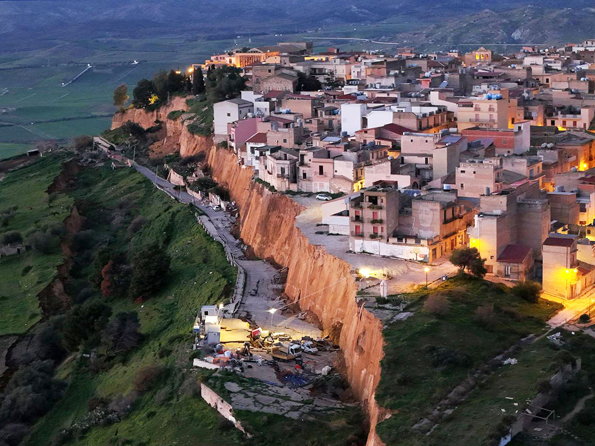 Nach schweren Unwettern auf Sizilien hat sich in einer Stadt ein massiver Erdrutsch gebildet. Seit dem Wochenende sackt der Boden in Teilen des Gebiets von Niscemi im Süden der Mittelmeerinsel ab. Ein Teil der Stadt steht regelrecht am Abgrund und droht abzurutschen. Mehr als 1.500 Menschen mussten nach Angaben der Behörden aus ihren Häusern evakuiert werden.