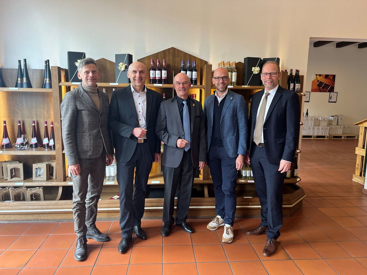 Bild: Einsatz für die Belange der genossenschaftlichen Weinwirtschaft: André Weltz, Frank Jentzer, Henning Seibert, Cornelius Lauter und Dr. Christian Weseloh (von links).