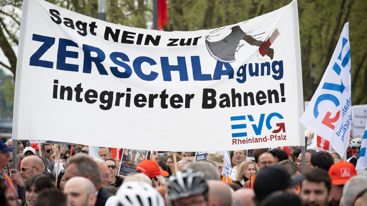 03.02.2025 - 04:30:38 | dpa.deDer Deutschen Bahn droht nach der Bundestagswahl die Zerschlagung. Die Union plant, den bundeseigenen Konzern unter einem möglichen Kanzler Friedrich Merz komplett umzukrempeln und den Betrieb und die Infrastruktur voneinander zu trennen. Die Eisenbahn- und Verkehrsgewerkschaft (EVG) ging deswegen in Berlin auf die Straße und warnte von einem «fundamentalen Angriff auf unsere Arbeitsplätze».