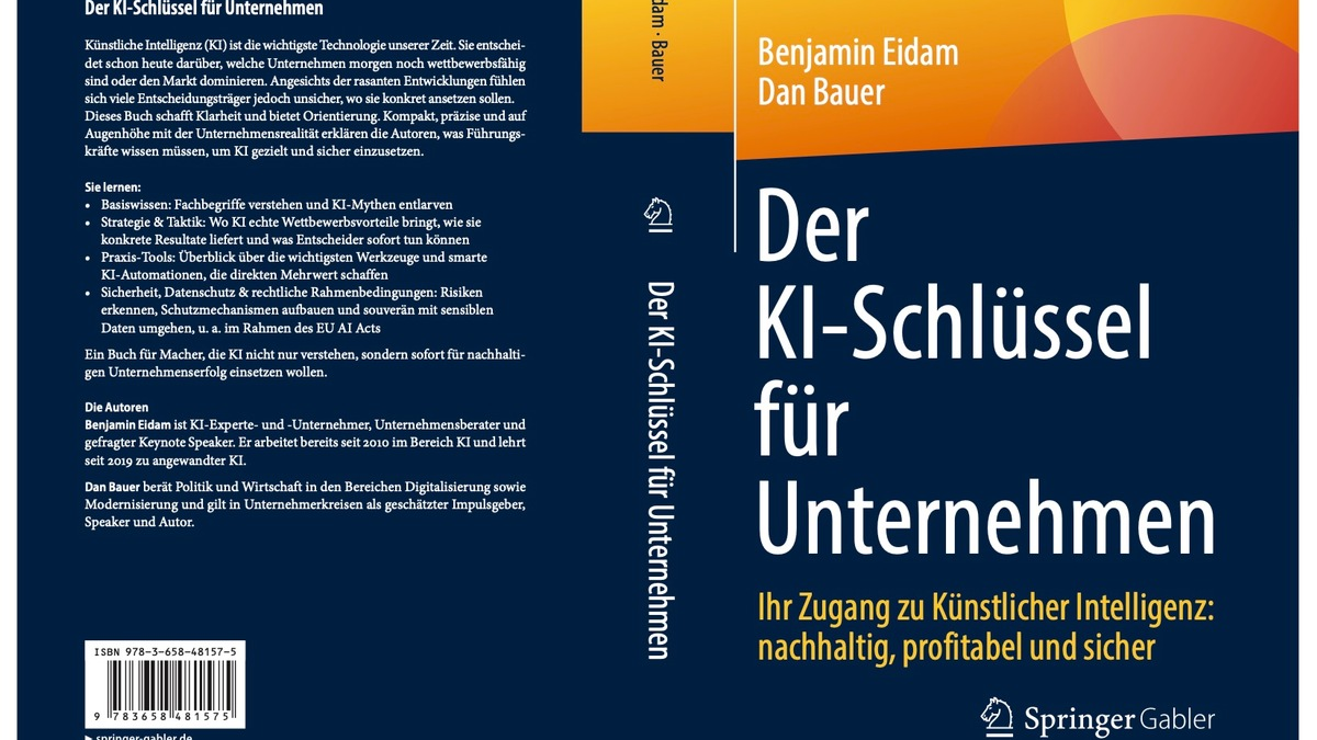Künstliche Intelligenz (KI) ist keine Zukunftsvision mehr - sie ist Realität und entscheidet schon heute über wirtschaftlichen Erfolg und Wettbewerbsfähigkeit. Angesichts der rasanten Entwicklungen fühlen sich viele Entscheidungsträger jedoch unsicher, wo sie konkret ansetzen sollen. Mit "Der KI-Schlüssel für Unternehmen - Ihr Zugang zu Künstlicher Intelligenz: nachhaltig, profitabel und sicher" legen KI-Experte Benjamin Eidam sowie Dan Bauer, Digitalisierungs-Experte und Wirtschaftssenator im renommierten Senat der Wirtschaft, einen praxisnahen, strategisch fundierten und sofort nutzbaren Leitfaden vor, der sich speziell an Führungskräfte, IT-Verantwortliche und Unternehmens-Entscheider richtet. Ihr Ziel: Deutschland KI-fit zu machen - und die Chancen der Technologie endlich in die Umsetzung zu überführen. Denn obwohl Unternehmen und Politik immer wieder Wohlstand durch mehr Arbeit beschwören, seien laut den Autoren nicht mehr Arbeitsstunden erforderlich, sondern zähle die Produktivität pro Arbeitsstunde - mit KI als Schlüssel.