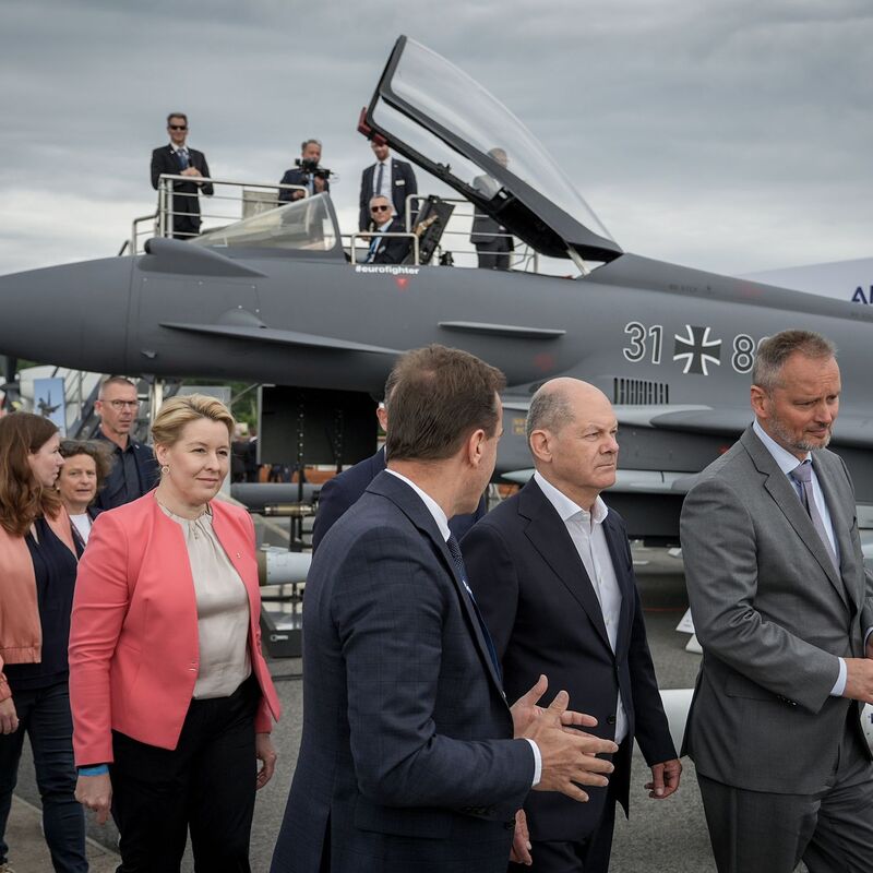 Die Politik in Deutschland habe um die Rüstungsbranche «in der Vergangenheit einen zu großen Bogen gemacht», sagte Scholz bei der Eröffnung. «Das ist vorbei. Der völkerrechtswidrige Angriff Russlands auf die Ukraine hat ganz Deutschland vor eine neue sicherheitspolitische Realität gestellt.» Aus Zeitgründen würden nun einige Waffensysteme auch von Partnern beschafft, die schon marktverfügbare Produkte haben. «Auf manches können wir schlicht nicht warten. Schnelligkeit ist aber nur ein wichtiger Aspekt», sagte Scholz. «Zugleich setze ich mich mit Nachdruck für den Erhalt und den Ausbau von Produktionskapazitäten ein.» Noch in dieser Legislaturperiode würden 20 weitere Eurofighter bestellt, zusätzlich zu den 38 Flugzeugen, die derzeit noch in der Pipeline seien.