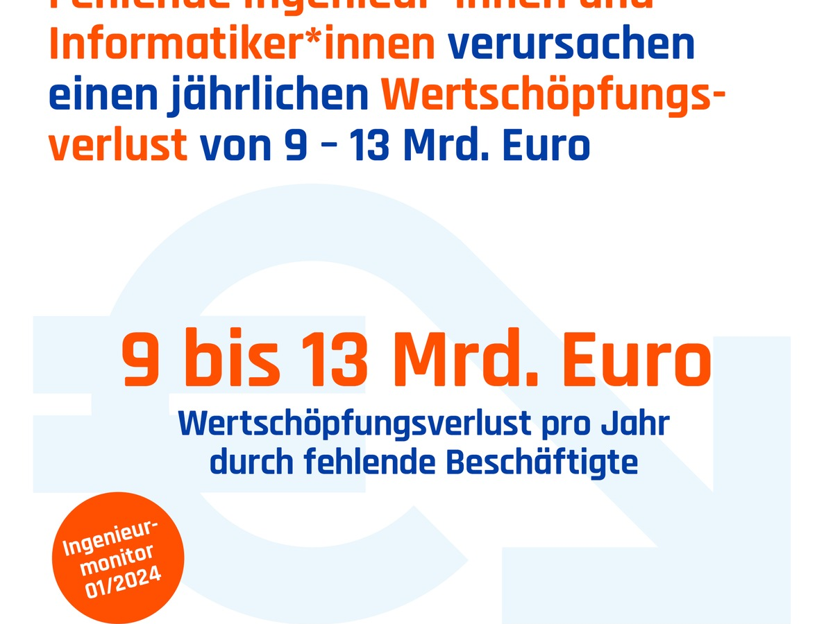 Massiver Fachkräftemangel in den Ingenieur- und Informatikberufen: Jährlicher Wertschöpfungsverlust liegt bei bis zu 13 Milliarden Euro