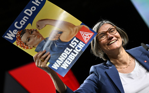 Nach einem von Benner gewonnenen Machtkampf hat ihr die IG Metall in Frankfurt den Start leicht gemacht. Begeistert jubeln die Delegierten ihrer strahlenden Vorsitzenden zu, als sie ein Plakat mit dem Slogan «We can do it - Wandel ist weiblich» in die Höhe streckt. Zu den ersten Gratulantinnen gehört DGB-Chefin Yasmin Fahimi, auf deren Posten Benner sich 2022 nicht hatte wegloben lassen. Stattdessen verfolgte sie beharrlich ihr Ziel, erste weibliche Chefin der mächtigsten deutschen Gewerkschaft mit mehr als 2,1 Millionen Mitgliedern zu werden.